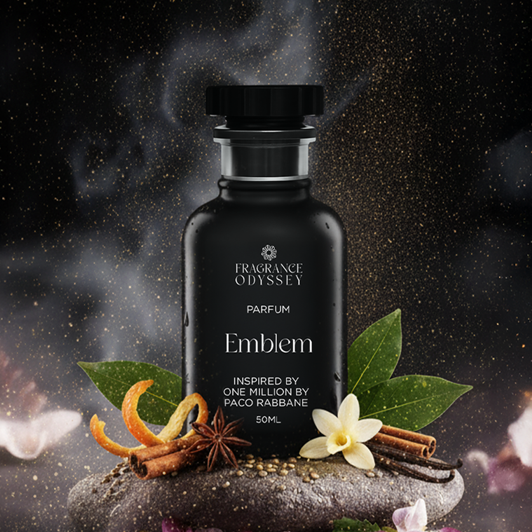 Emblem is bold, daring, and unapologetically charismatic. It bursts open with an irresistible mix of grapefruit, mint, and blood mandarin, delivering a fresh yet juicy sweetness. At its heart, the scent warms into rich rose, spicy cinnamon, and deep spice notes that add an oriental, seductive twist. Finally, the base of leather, amber, patchouli, and woody notes anchors the fragrance with a luxurious, warm depth that feels powerful and magnetic.