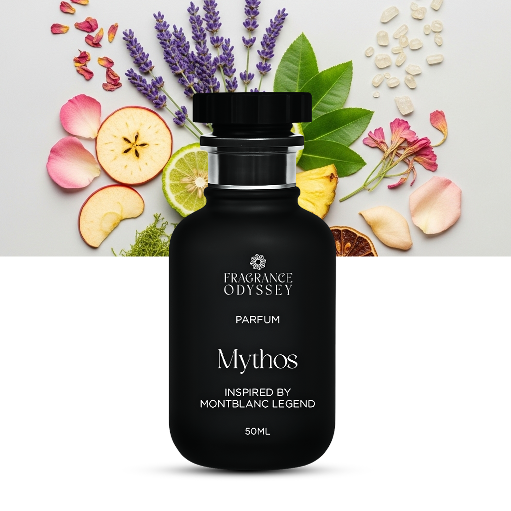 Mythos blends modern elegance with quiet strength. It opens with fresh, uplifting notes of bergamot, lavender, pineapple leaf, and verbena, creating an airy yet slightly fruity introduction. The heart deepens with a sophisticated mix of coumarin, oakmoss, geranium, apple, and rose, adding warmth and an aromatic floral edge. Finally, the base of sandalwood and tonka bean offers smooth, creamy depth that lingers gracefully.