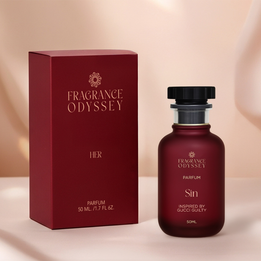 Sin is daring, sensual, and modern — a fragrance that captures the thrill of breaking the rules with style. It opens with the spicy sparkle of pink pepper paired with fresh mandarin orange, instantly adding energy and intrigue. The heart blooms with soft lilac, geranium, and a hint of peach, bringing a floral warmth that feels both elegant and playful. Finally, the base of amber and patchouli wraps the scent in a warm, slightly earthy richness that lingers seductively.